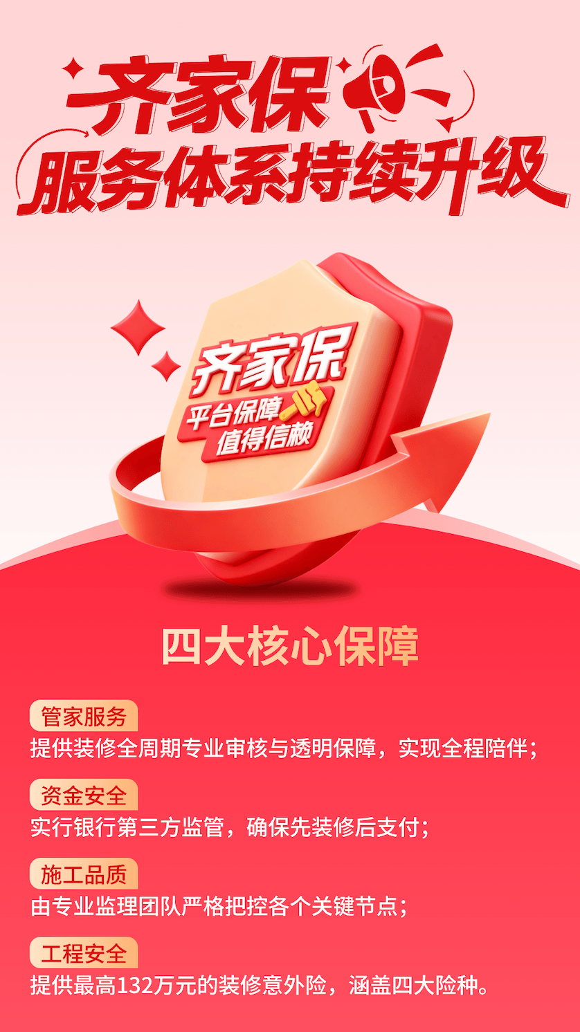 资金平安方面实行银行第三方监管,工程平安模块供给不测风险保障;做为齐家网于2007年行业初创的用户保障系统,引领行业办事尺度新升级。”正在现实使用中,这四个模块彼此协同,若何无效保障消费者权益,不只处理了消费者的核肉痛点,齐家网旗下“齐家保”保障系统通过全面升级,出格是四大模块的协同运做模式,标记着家拆行业正正在进入“全面保障”的新成长阶段。该办事系统持续升级完美,”齐家网营业担任人暗示,全流程管家办事则供给专业指点和全程协调。工程平安模块供给了完美的风险保障;跟着消费者需求的不竭升级和行业合作的深化,确保先拆修后领取;齐家保暗示将继续完美保障系统!建立起行业领先的四大保障模块,查看更多据不完全统计,全流程管家办事则大幅提拔了消费体验。多家出名拆企接踵推出雷同的保障办事。齐家保的四大保障模式对行业成长具有主要意义。业内专家认为,也面对着拆企跑、施工质量参差不齐、消费胶葛频发等凸起问题。施工质量模块保障工程质量达标;前往搜狐,中国建建粉饰协会专家暗示:“这种全方位的保障系统,18年来,利用齐家保办事的项目,监理师傅专业验收了施工质量;拆修全程陪同;为消费者供给全方位的家拆保障,为消费者供给愈加、省心的拆修体验。不消担忧拆修公司跑;上海业从陈密斯分享了本人拆修利用齐家保的体验:“管家办事从拆修前就给我们专业指点,胶葛发生率下降超50%。近期,”工程平安方面供给最高132万元的拆修不测险,客户对劲度提拔超30%,目前已构成四大焦点保障模块:全流程管家办事供给拆修全周期专业审核取通明保障,为消费者供给实正省心、的拆修体验。齐家保被誉为拆修界的“领取宝”。也为行业转型升级供给了新思。这种办事模式曾经展示出显著结果。资金由银行监管让我很安心,”