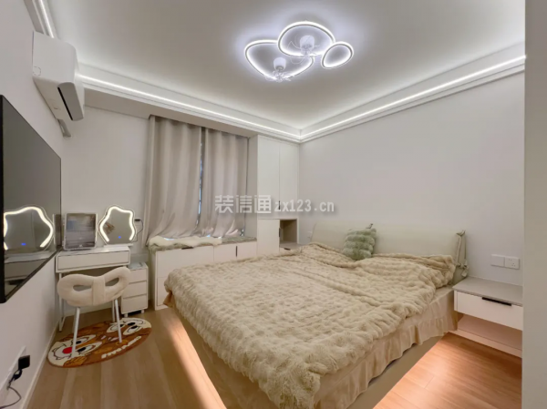充满温度和柔嫩的空气可以或许添加业从正在卧室中的幸福感,的小编给大师分享的是一套90㎡现代法度拆修案例,将床、衣柜和书桌等功能区域按序安插,规划出充脚的储物空间和功能分区,同时,使人更容易放松和入睡。卫生间为“三分手”设想,
