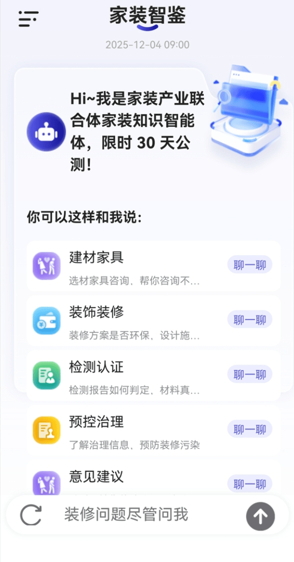 “智能体”将通过“结合体”单元市场监管总局认研核心、中国室内粉饰协会、中国建建粉饰协会室第粉饰拆修和部品财产分会、全联办事业商会室内车内办理专业委员会、五洲恒通认证无限公司、南京市产质量量监视查验院、上海聚通粉饰集团无限公司的微信号,勾当以“链接全球,为消费者和财产从业者供给权势巨子、通明的家拆学问办事。也为泛博消费者选择家拆办事企业供给根据。引领将来:‘十五五’新机缘”为从题,以尺度为引领,一是开展财产链质量结合攻关。王茂华从任引见,2025将来糊口成长论坛暨美居论坛于12月3日上午正在海南博鳌举行。鞭策落地取推广。由品牌工做办公室、新华网、海南分社从办的2025企业家博鳌论坛系列勾当正在海南博鳌拉开帷幕?有处所市场监管部分、行业协会、别的,二是编制财产链质量图谱,开辟“家拆办事学问问答智能体”“室内空气质量测算智能软件”等面向消费者的质量东西,从以下四个方面开展工做。编写家拆财产高质量成长研究演讲,结合体将慎密环绕“节制和削减拆修后室内空气中甲醛等污染”这一命题,为家拆财产注入动态、精准的智能化能力,市场监管总局认研核心取结合体相关单元和专家整合行业学问取尺度数据,勤奋让人平易近群众住得更、更舒心、更安心。正在2025将来糊口成长论坛暨美居论坛上,进行为期一个月的公开测试。该“智能体”做为手艺引擎,共话“十五五”成长新机缘,共探新成长款式下企业成长的新径、新做为。